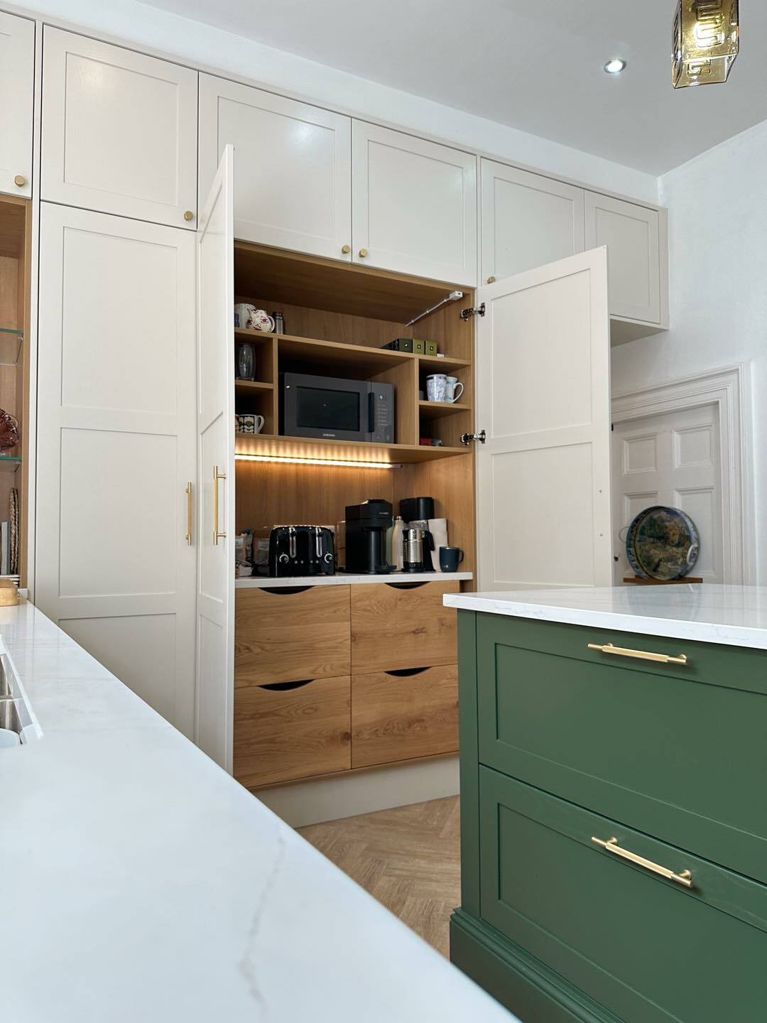 We’ve just completed a stunning kitchen in our Albany Range, painted to our client’s exact colour specifications - a harmonious blend of warm porcelain and rich green tones.