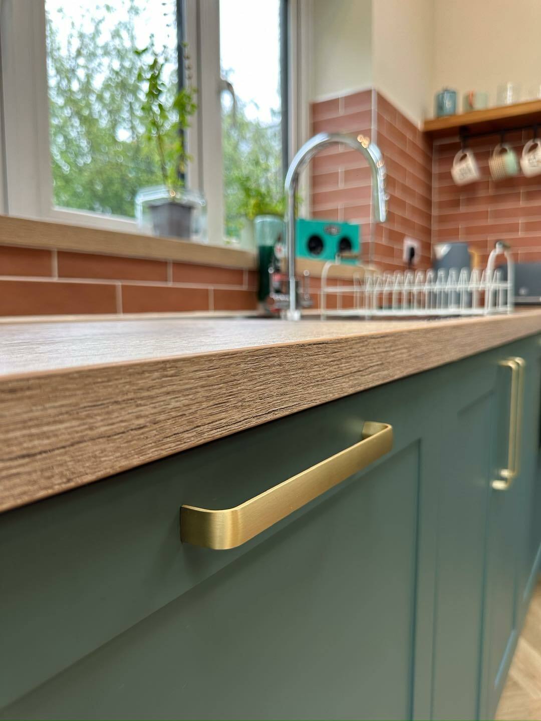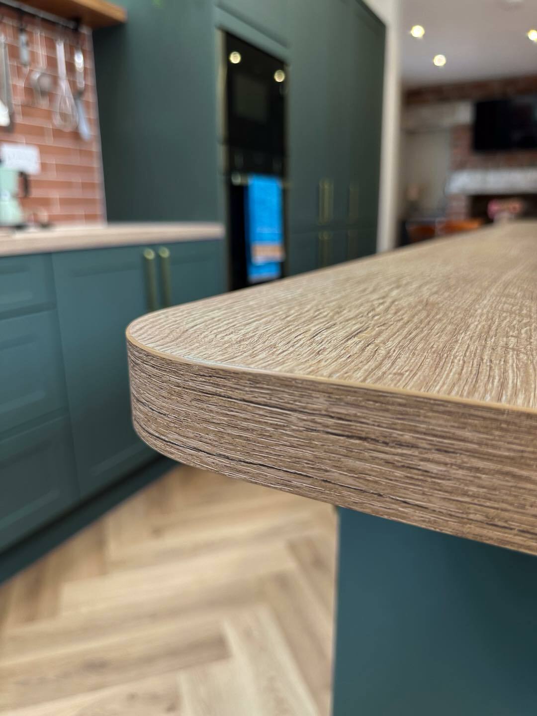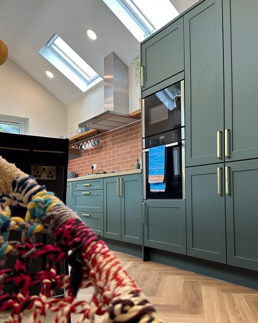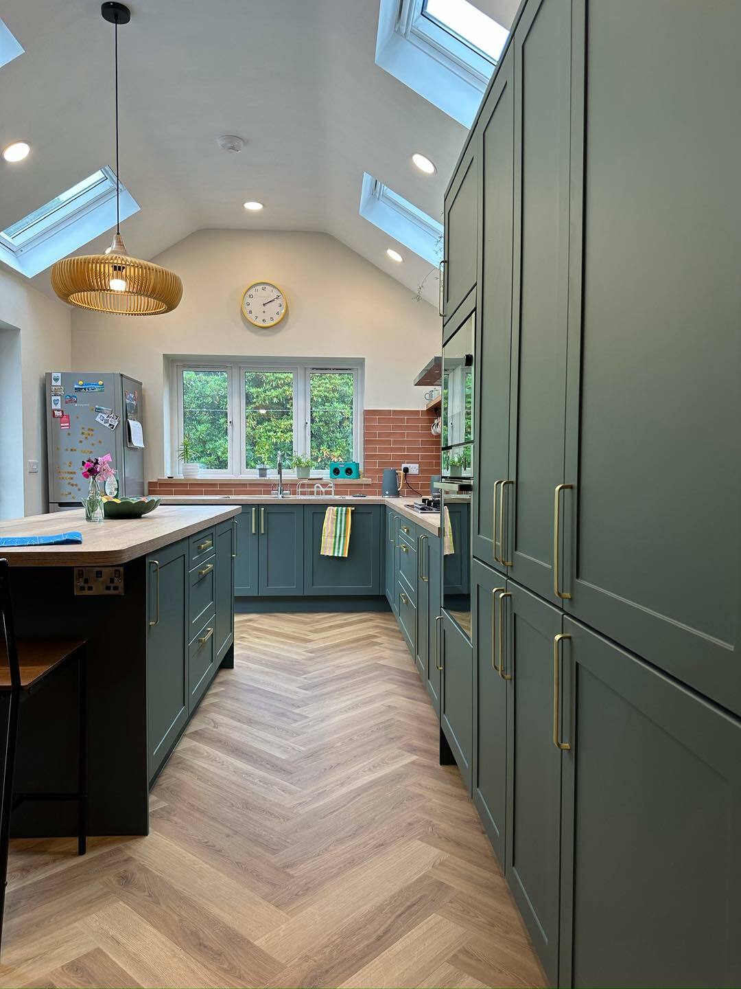 The rich tones of Berkeley Kombu Green are perfectly balanced with the warmth of wood-effect worktops, while premium appliances bring innovation and functionality to the heart of the home.