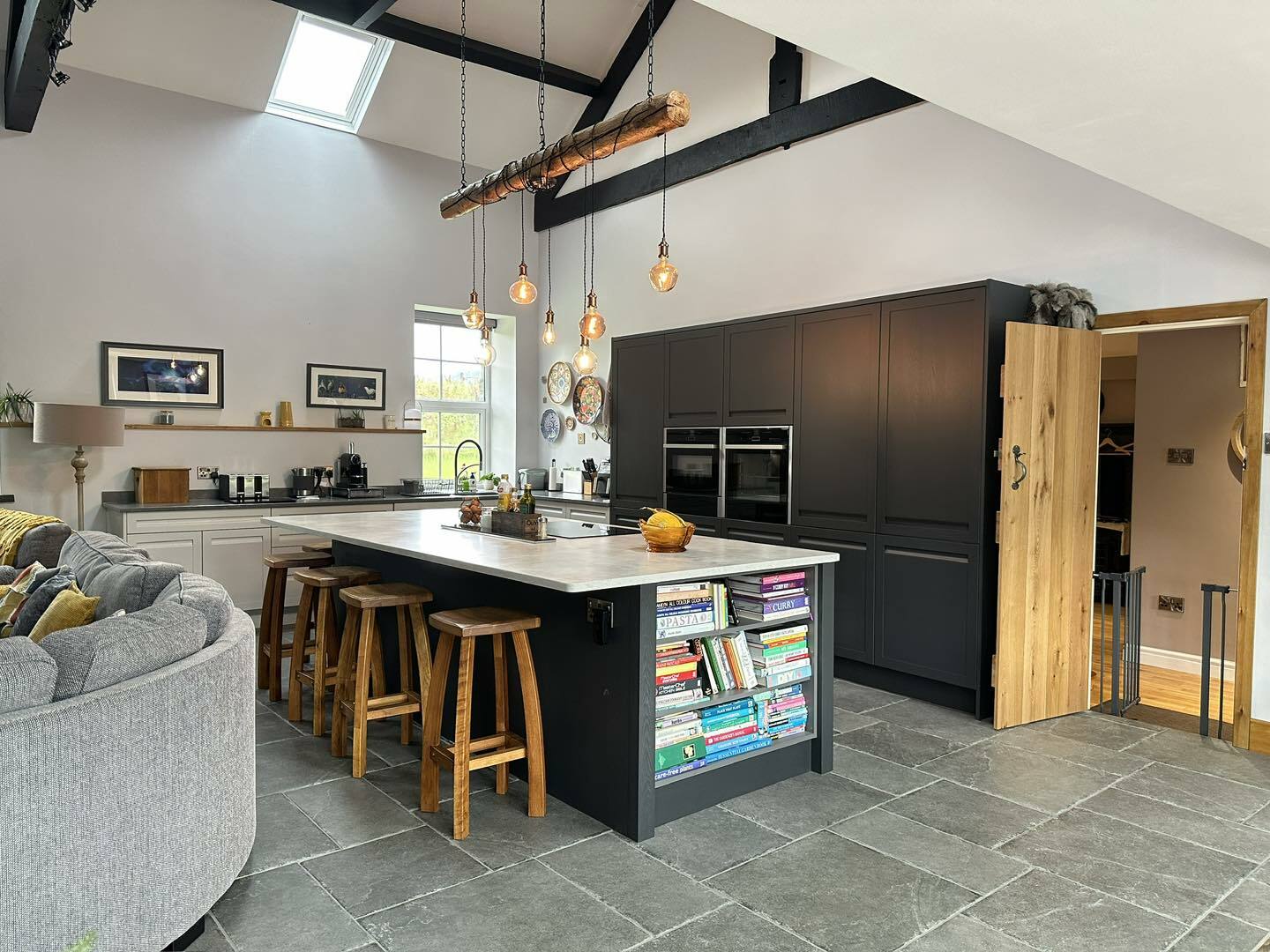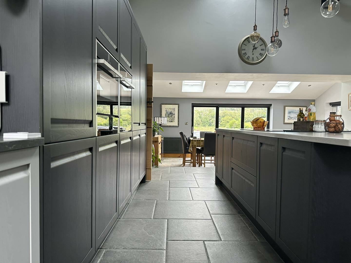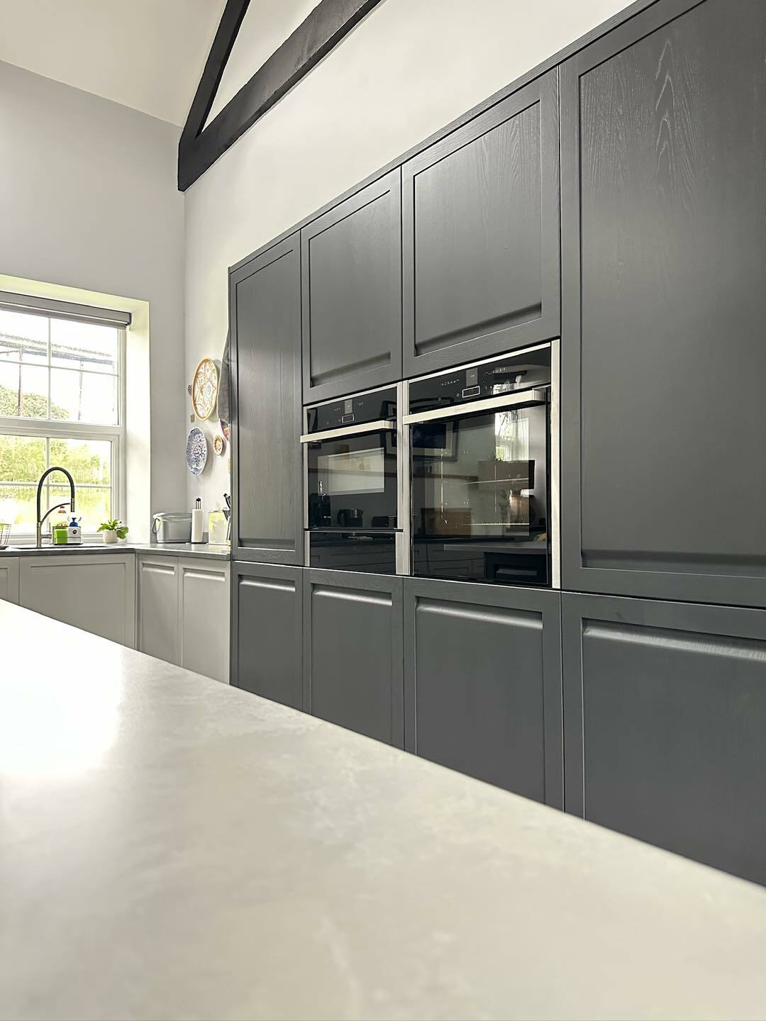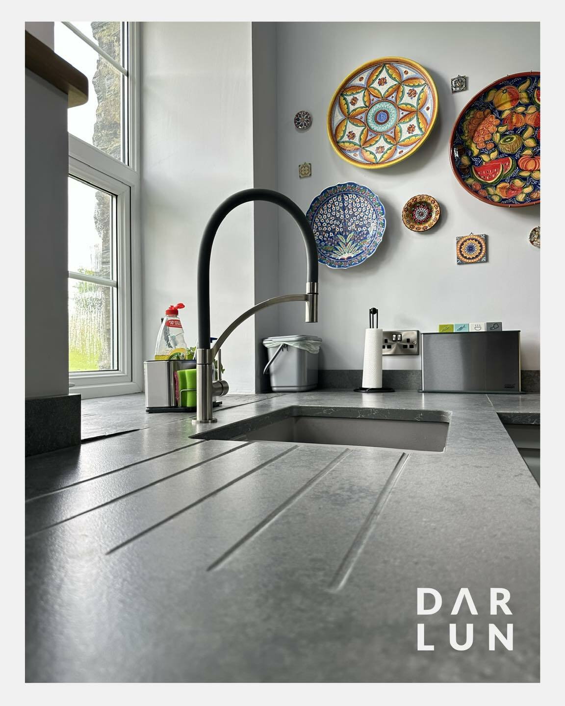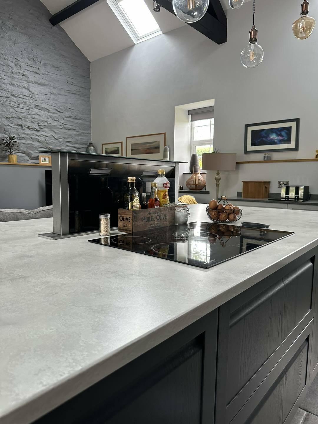 Feast your eyes on this stunning kitchen nestled in the valleys of Ffestiniog - where sleek, modern elegance meets timeless design. Featuring a gorgeous combination of Gaddesby Holkham Graphite and Light Grey cabinetry. Bespoke stone worktops designed and crafted in-house by Grey Slate & Stone Ltd. A stylish Ambiente Cemento island paired with a dramatic Dark Cemento main worktop - both showcased in a durable and low maintenance matt finish. Dreaming of your own kitchen transformation? Get in touch today to get a FREE quote - let’s bring your vision to life. ✨