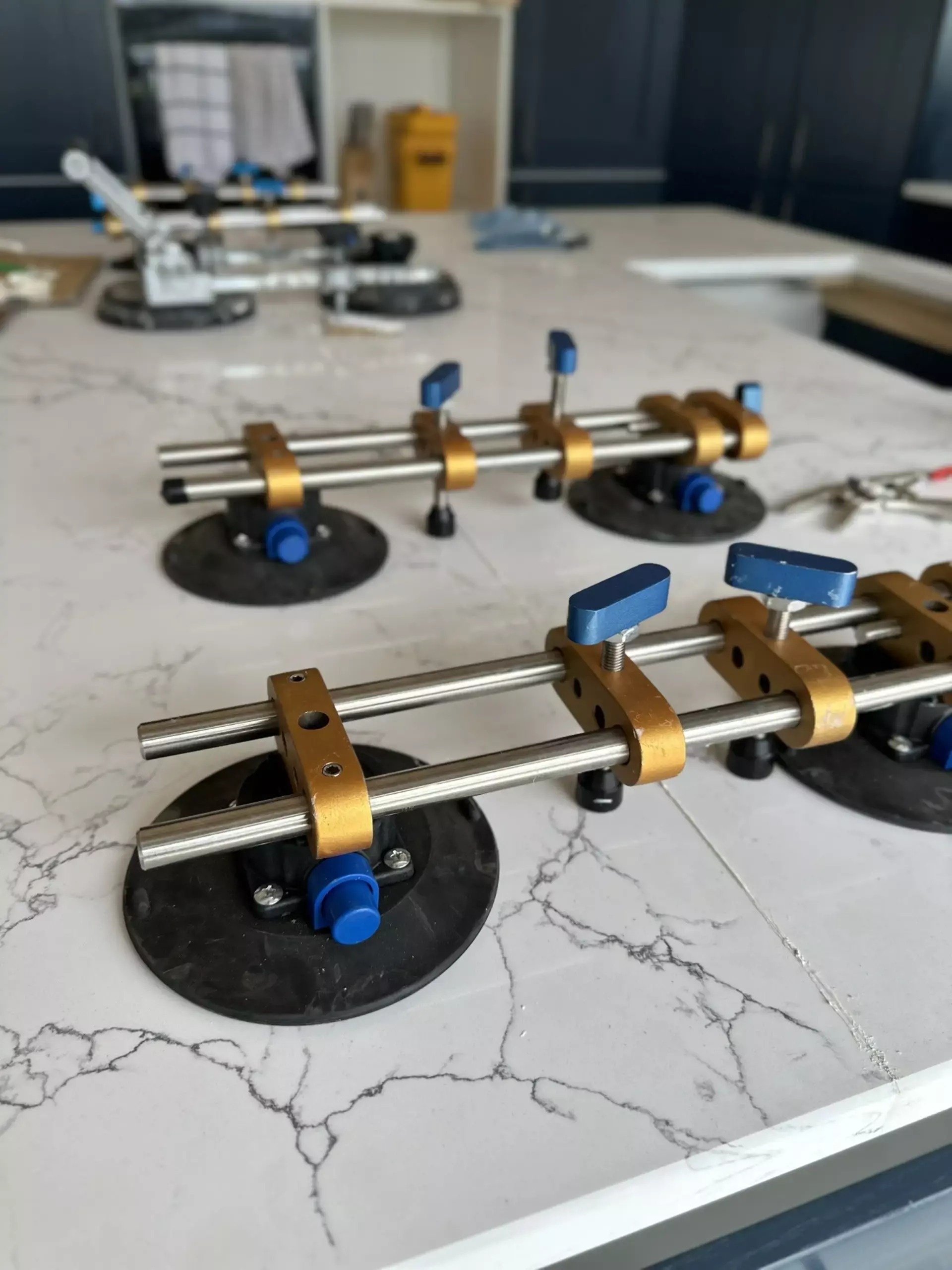Our slate and quartz worktops are fabricated entirely in-house by our sister company Grey Slate and Stone Ltd, where craftsmanship, precision, and attention to detail come together in every piece we produce. This hands-on approach allows us to maintain full control over quality and ensure every project meets our high standards - from the first cut to the final polish.